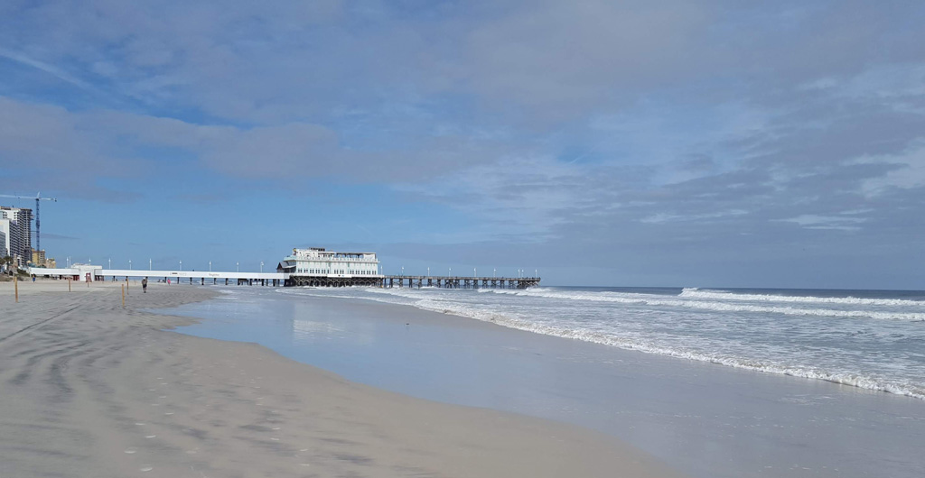 The next morning was overcast and only middling temperature, but I drove down to Daytona Beach proper (the circuit is about 5 miles from the coast) and, as the weather brightened, wandered along the hard packed sand that once echoed to land speed record attempts and beach races, before the racers moved inland to the purpose built, tarmac circuit.
