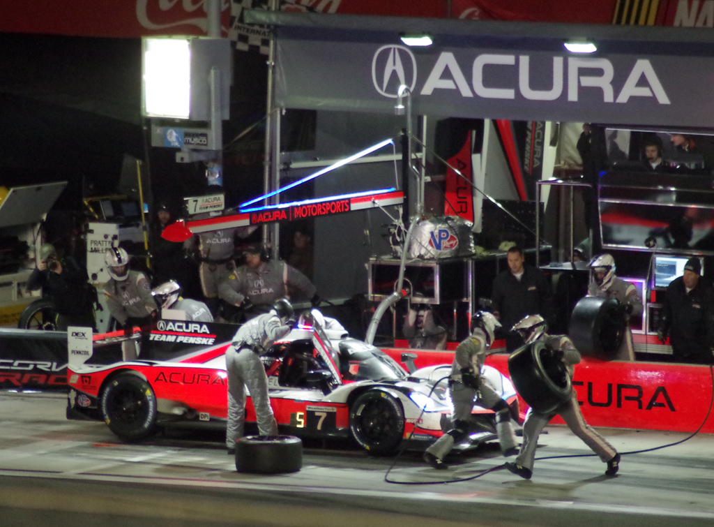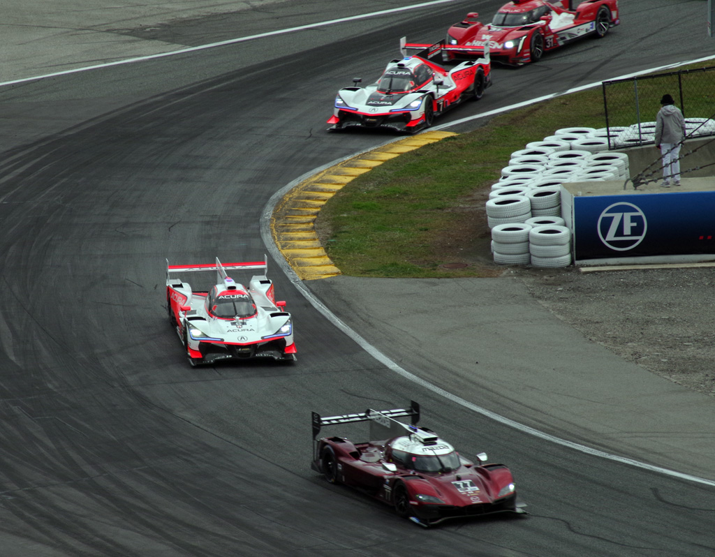 The race got underway at the rather odd time of 2:35PM and the pole setting Mazda and one of the Penske run Acuras (Hondas) battled for the lead, with the rest of the DPI field in close attendance.